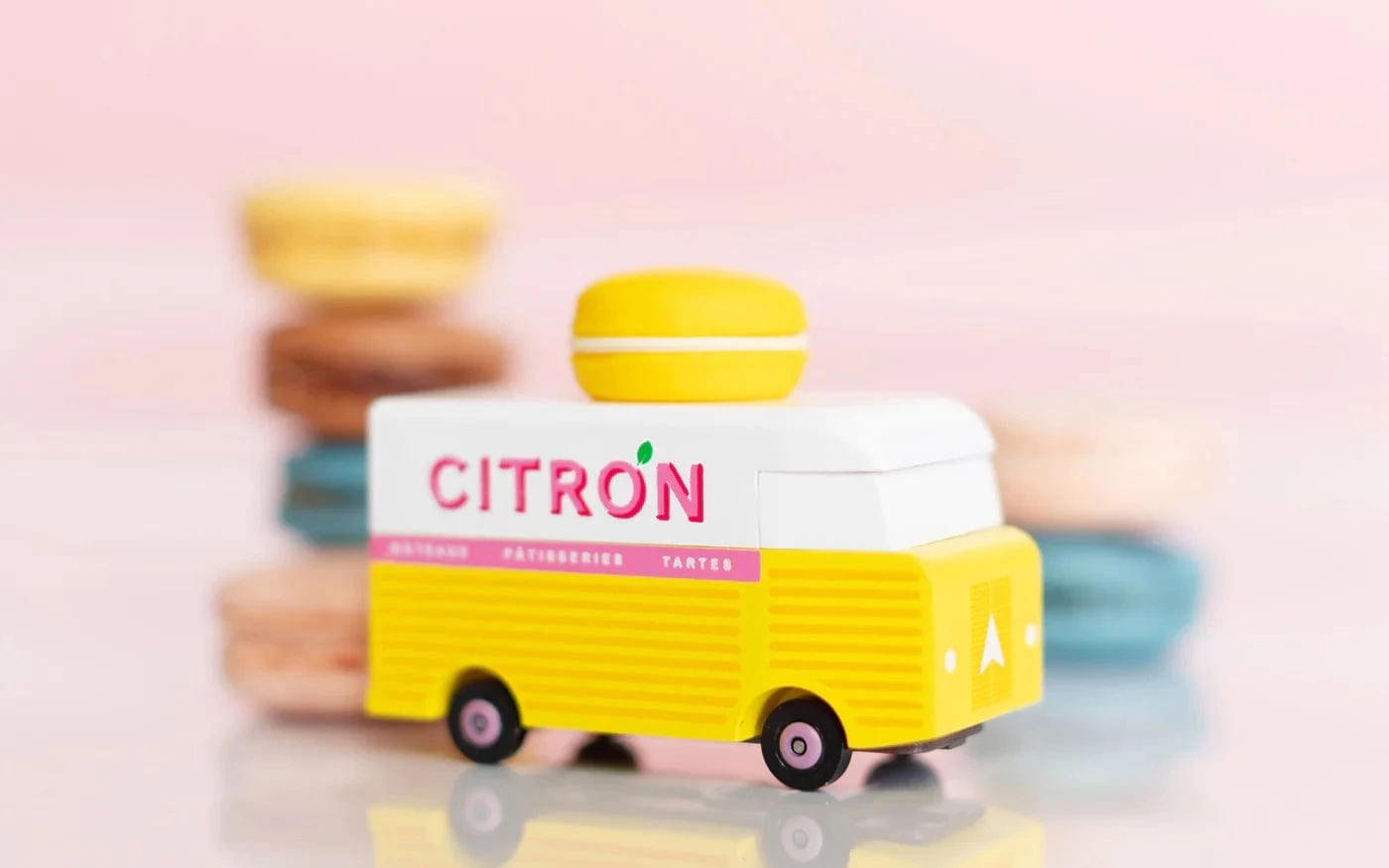 Oh la la! Get ready for the cutest addition to the toy collection – the Macaron Van. This handcrafted beech wood toy is perfect for little pastry chefs in the making. Serve up your favorite imaginary macarons like a true Parisian. Available in three delicious flavors – Framboise (Pink), Citron (Yellow), and Menthe (Blue). Oui oui!