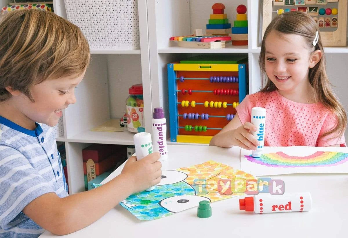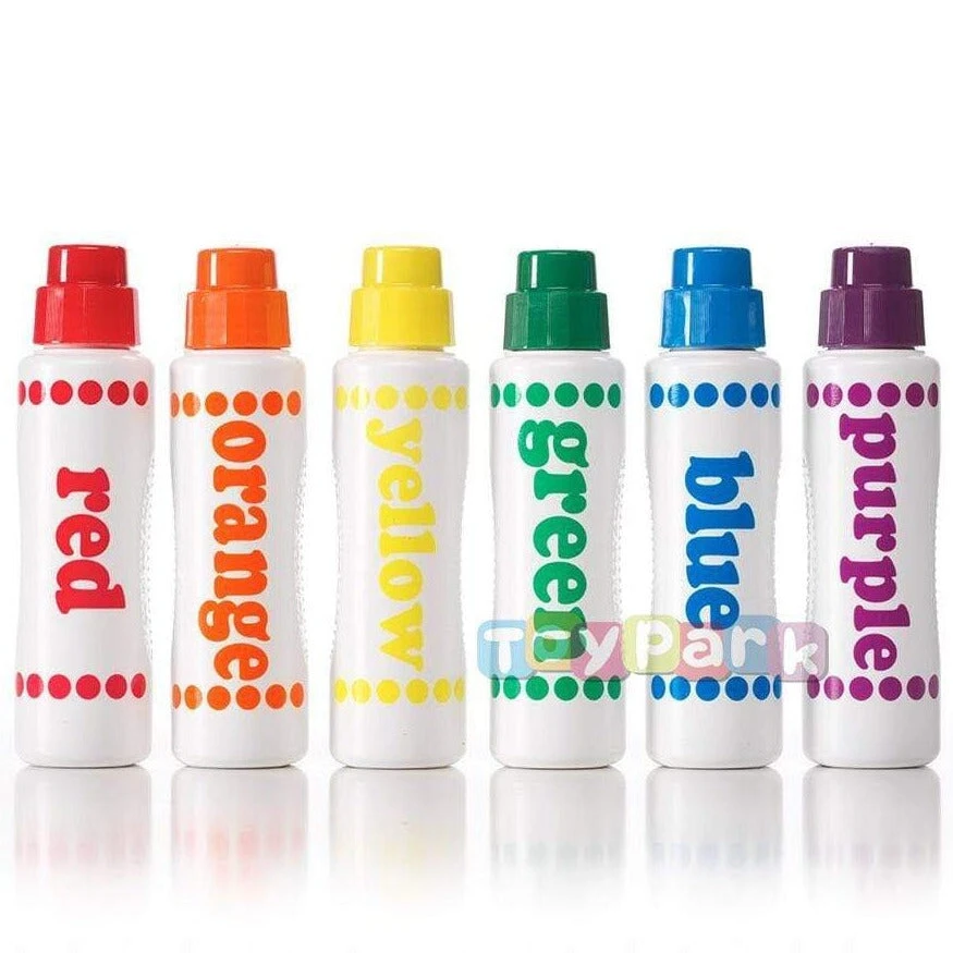 Do A Dot Art! This set comes with 6 washable dot markers in no spill, no splash bottles, which is a dream come true for parents and teachers. Do A Dot Art! is incredible for developing hand eye coordination and colour recognition for young children, and is the first art medium every young child should use. Let your imagination run wild with this set of primary rainbow colours.