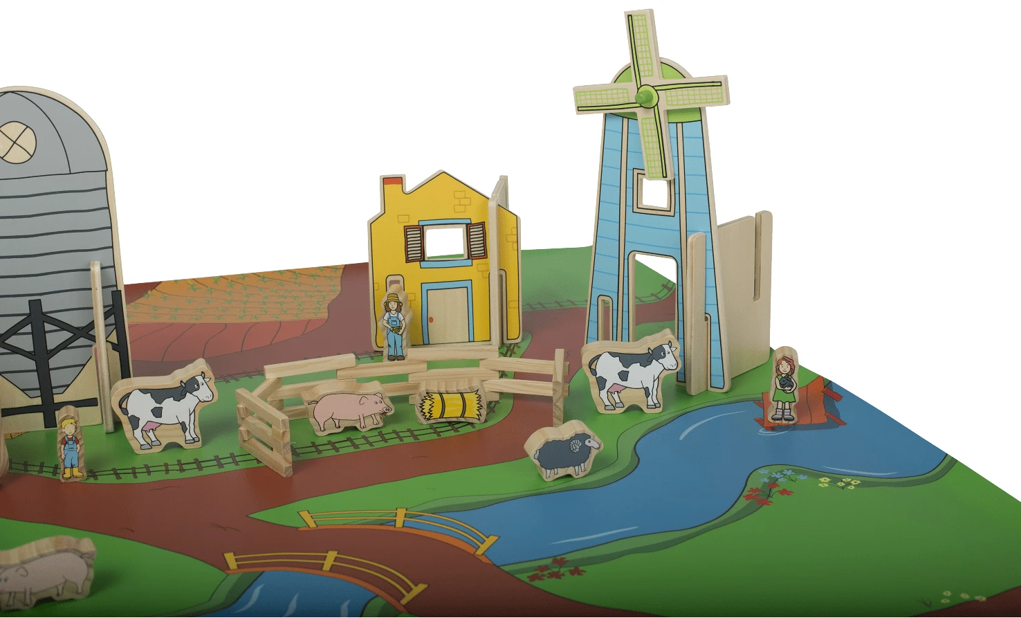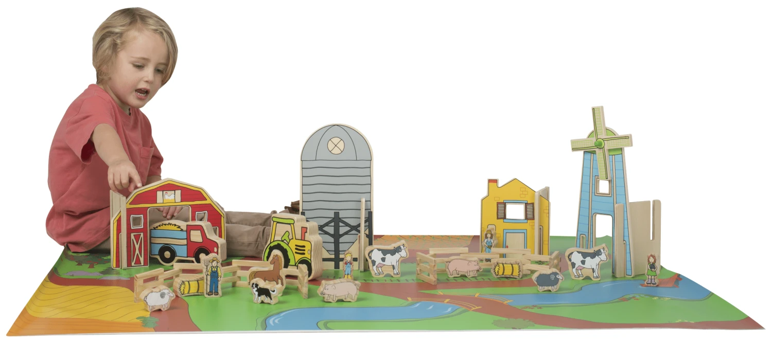 The Farm Playmat is the perfect accompaniment for your child’s creative play. Use with the Freckled Frog wooden Farm set to create a world of imaginative play for your child complete with roads, fields and paddocks.