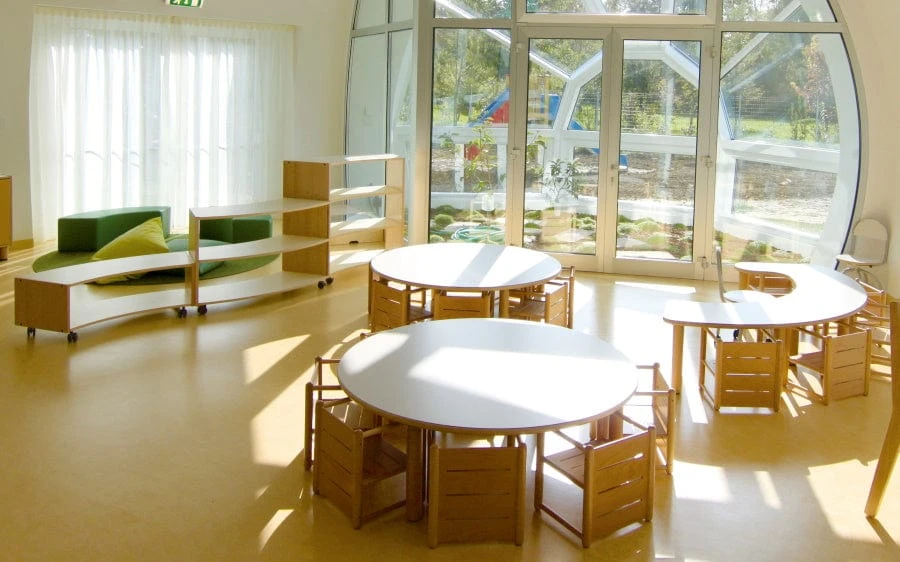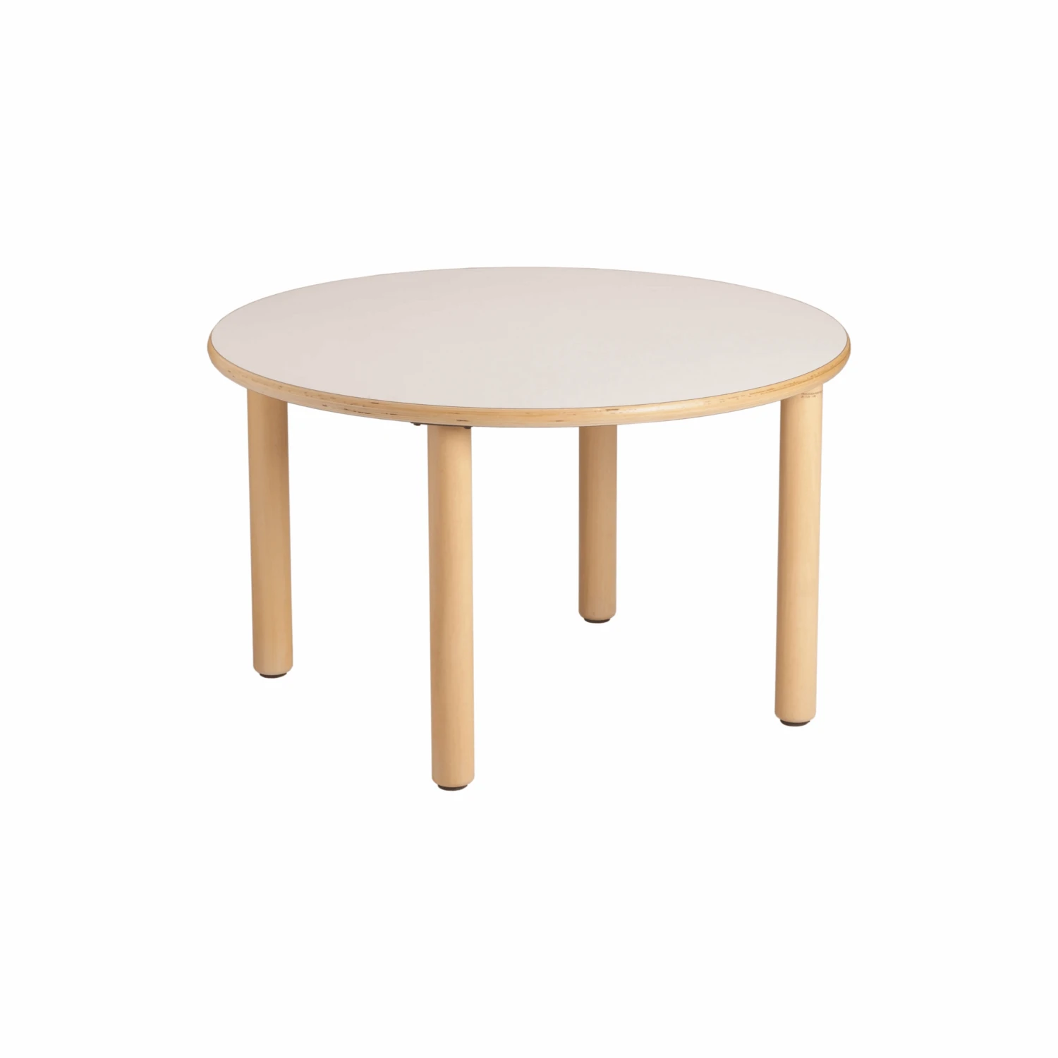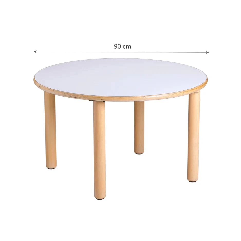 The table top is made of birch plywood with white veneer for a modern look. All the edges are round and smooth to provide additional safety for children. The table top and legs are packed seperately. Minimal assembly required.