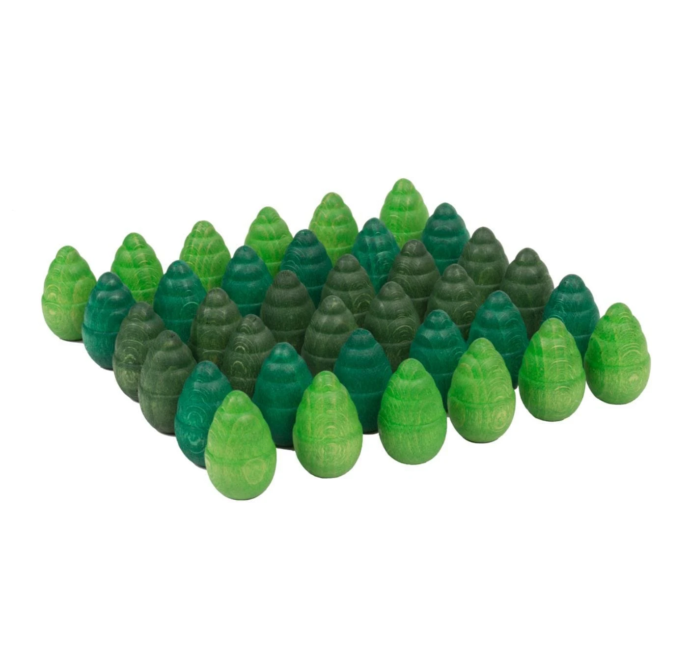 This Grapat Mandala Trees include 36 pieces ofย small wooden trees in 3 shades of green. Each tree is approximately 4cm in height.