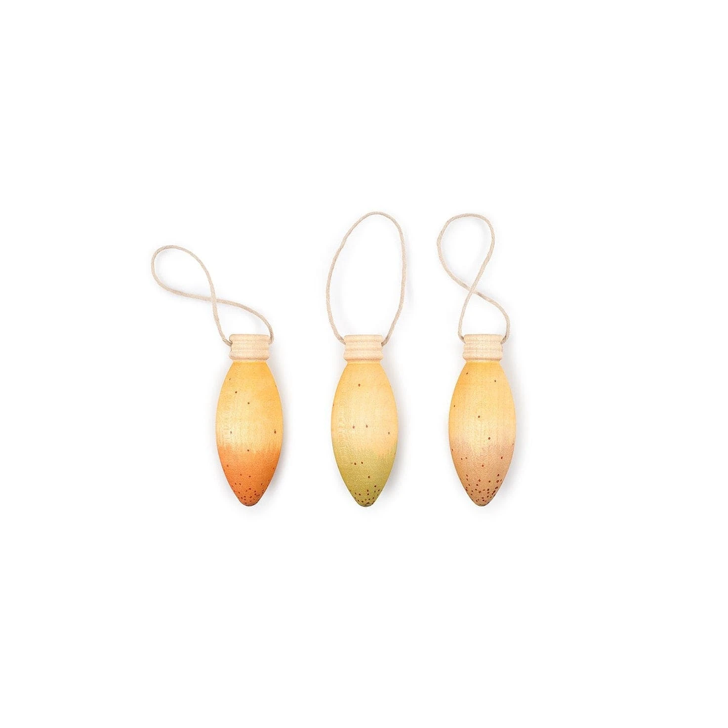 3 lamp-shaped pieces, painted by hand. Includes thread for hanging, from 68 mm height