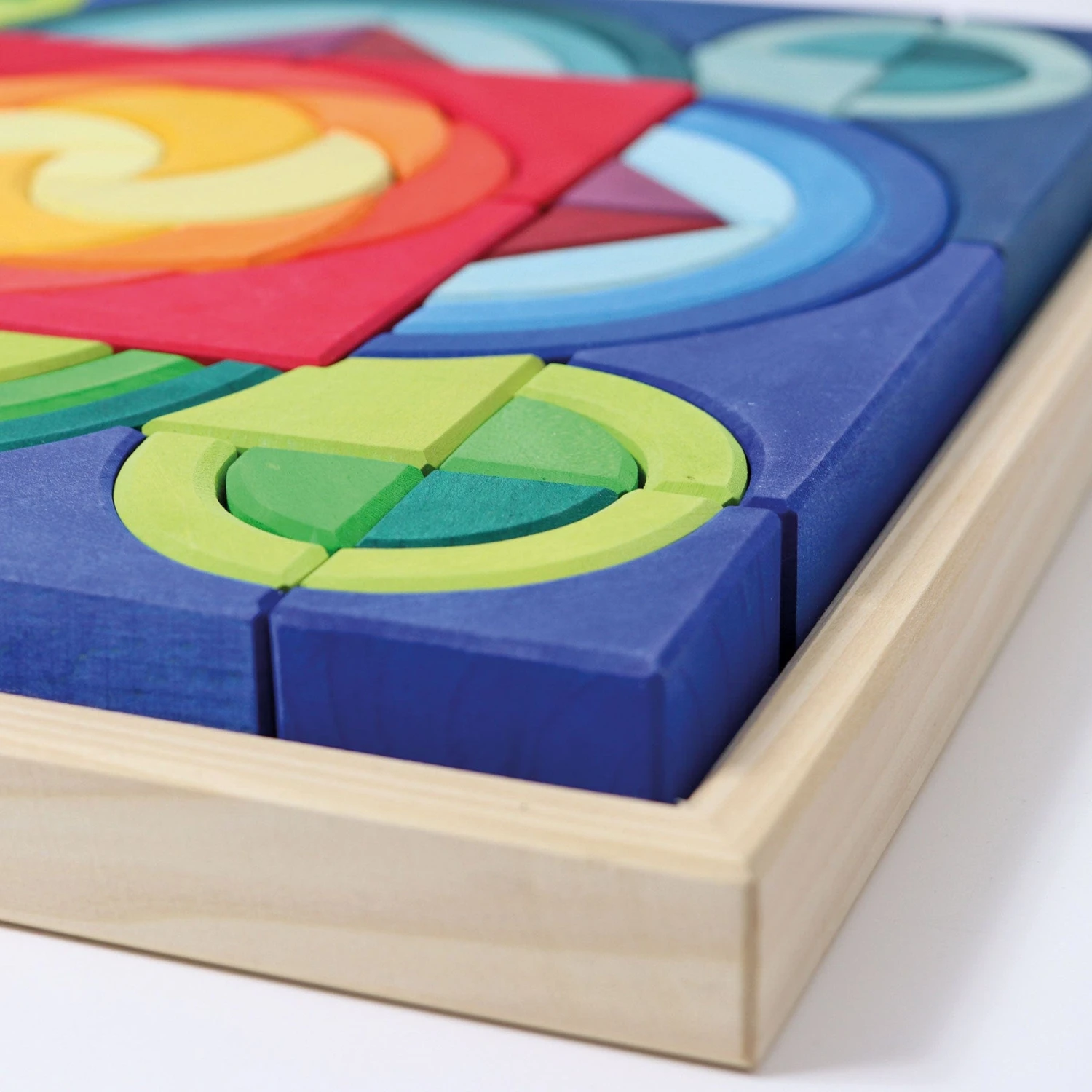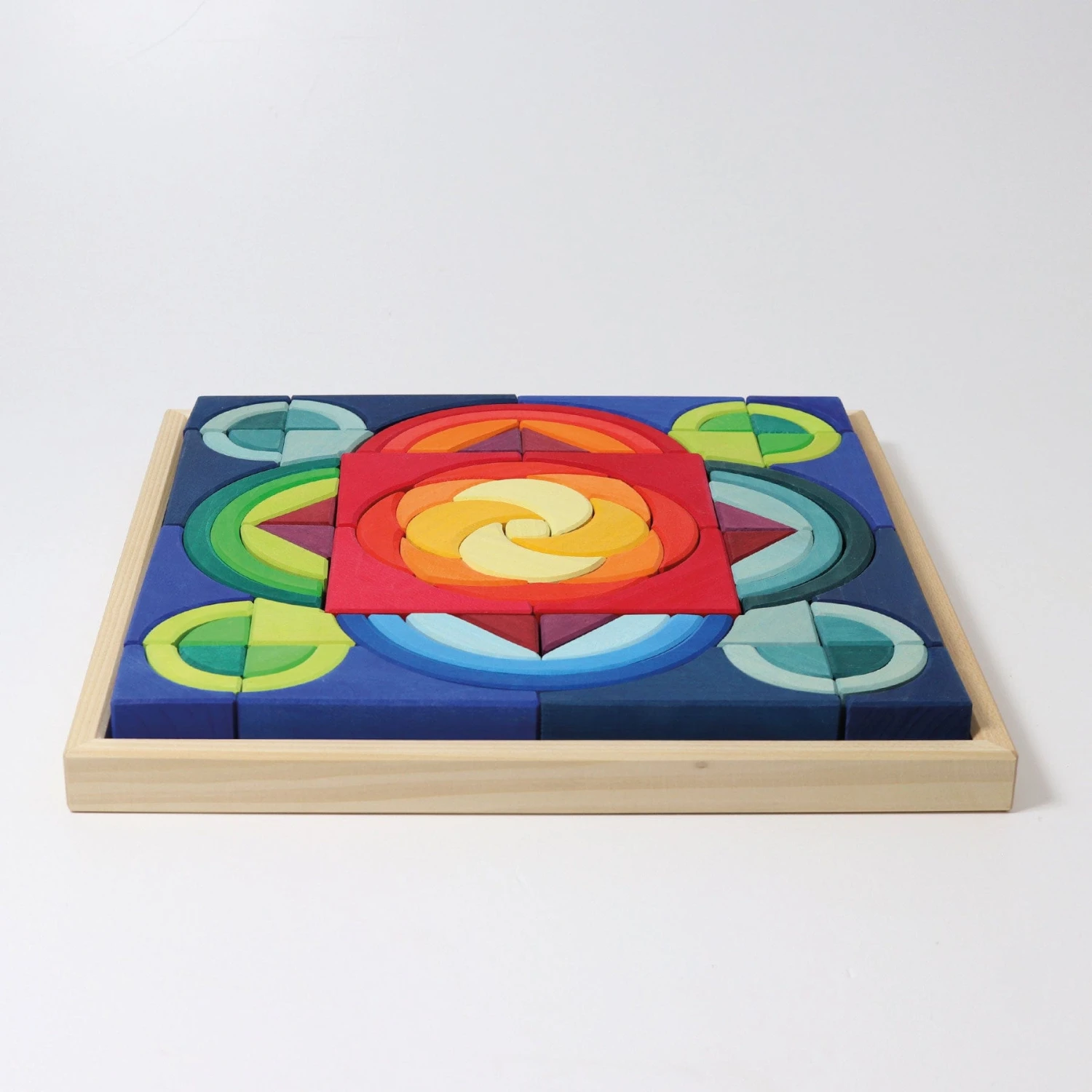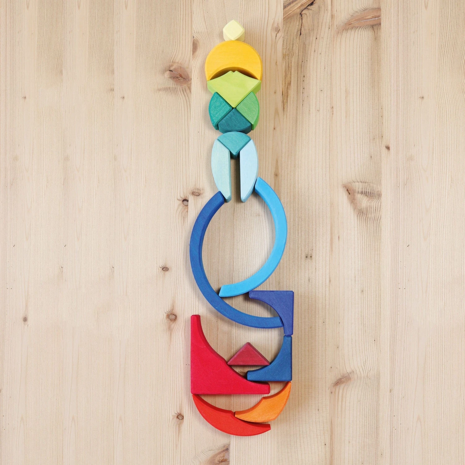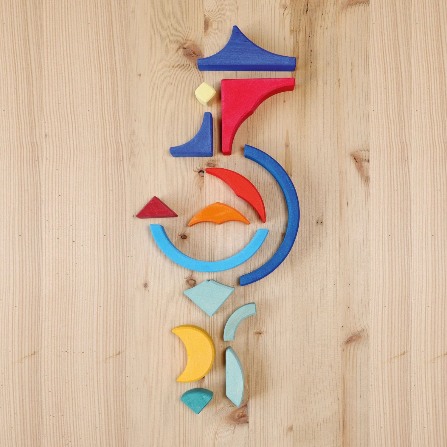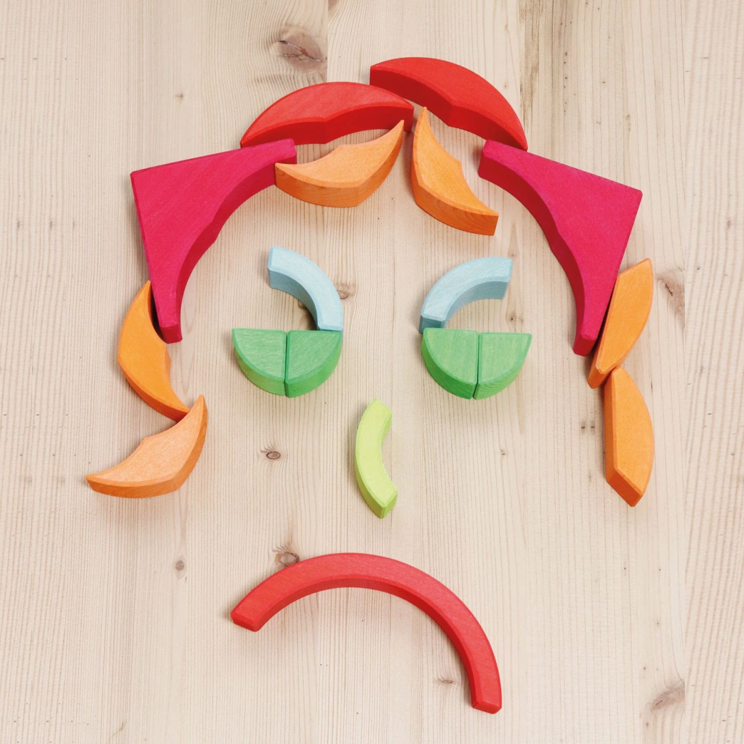 Its symmetry speaks its own language of forms and opens up a wide field of new play possibilities: Beautiful mandalas, flower pictures, faces and emotions, animals and figures, letters and ABC games! Diverse roof gables, bridges and city walls are created and open up a wide range of different architectures.
