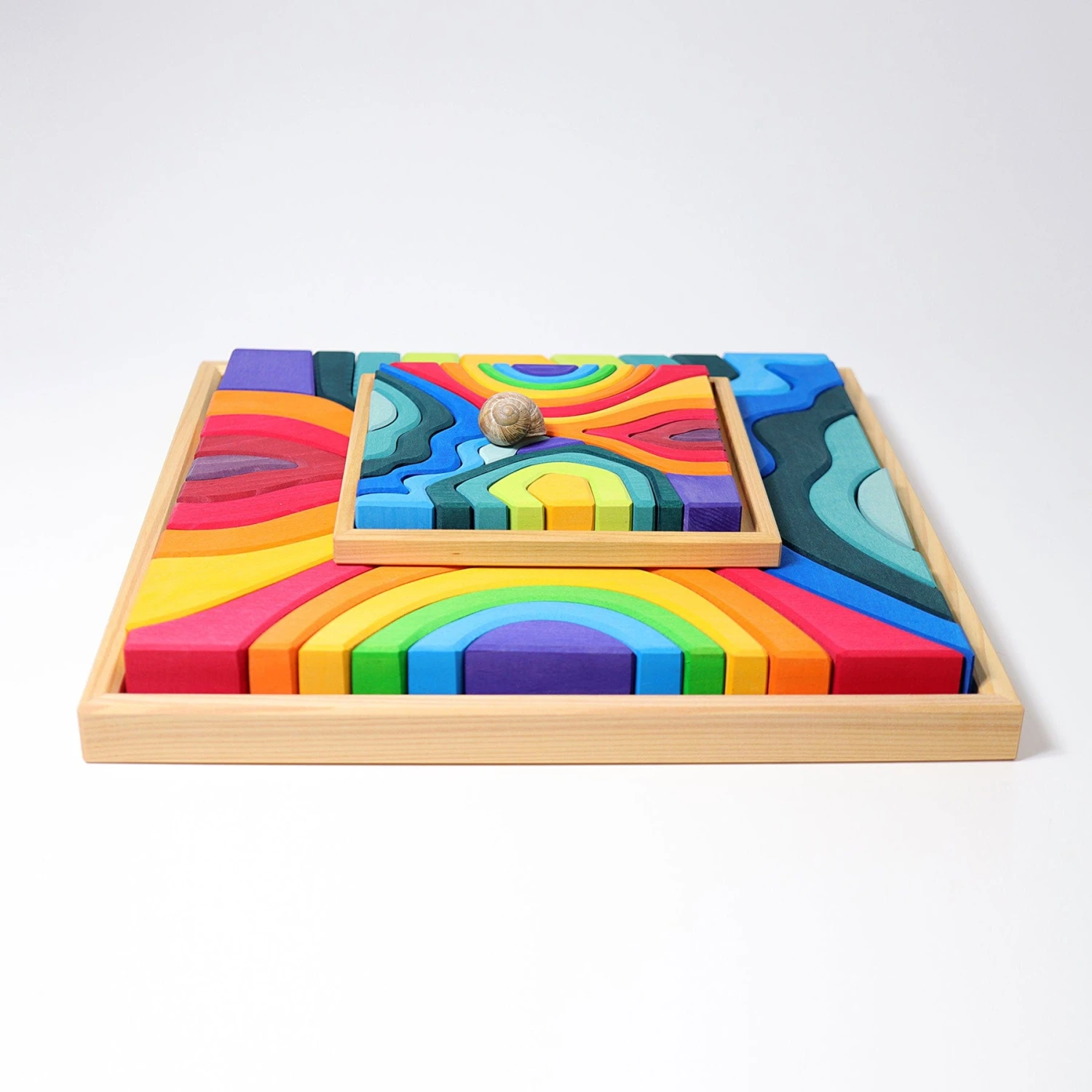 This stunning Grimm’s Four Elements Building Set, invites children (and perhaps adults too) to build creatively with an incredible palette of shapes and colours, whilst developing their imagination and spatial perception skills.