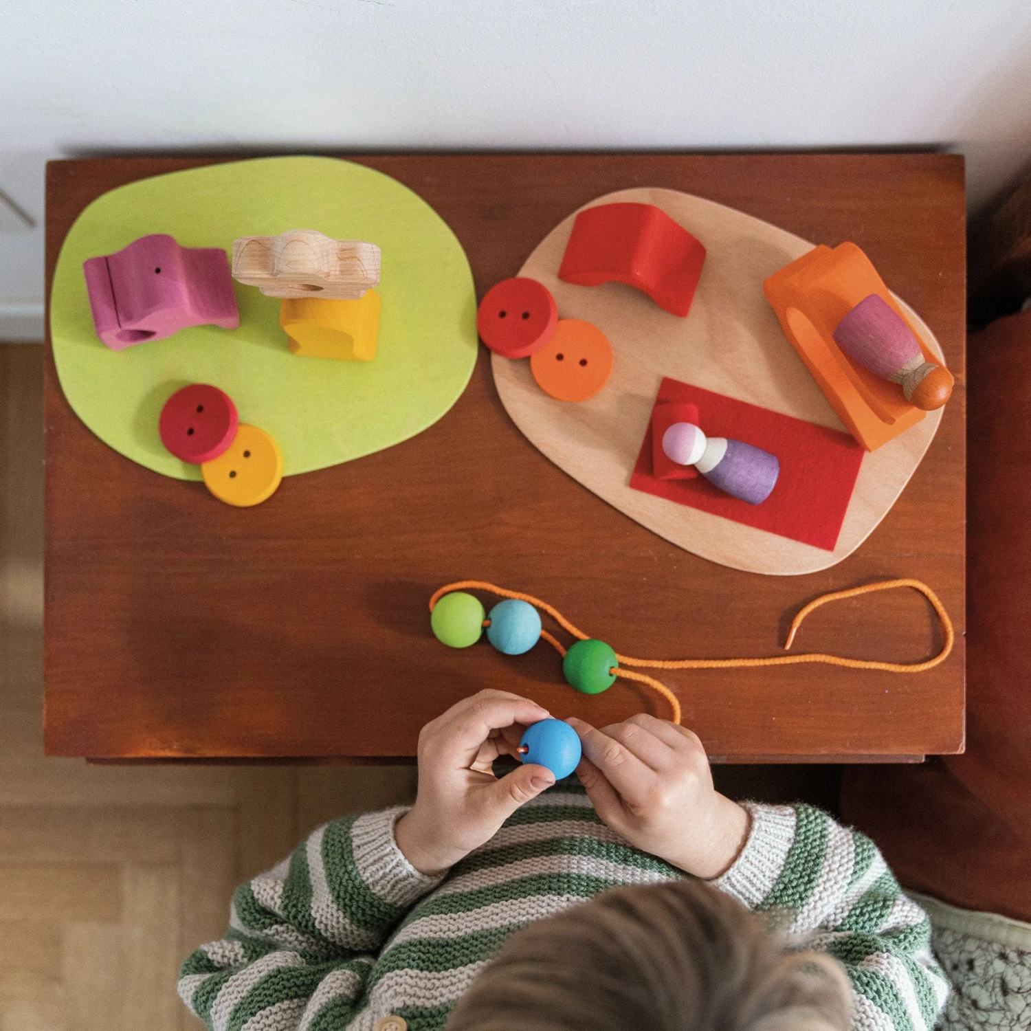Grimm’s love wood because it is a natural material, so it always has various markings that show up in our products, making each one unique. Grimm’s toys are always one of a kind, carrying unique marks made by nature. Wood grain has changing structures and colours which serve as proof of its natural origins. The unique variations are proof of quality, not defects.