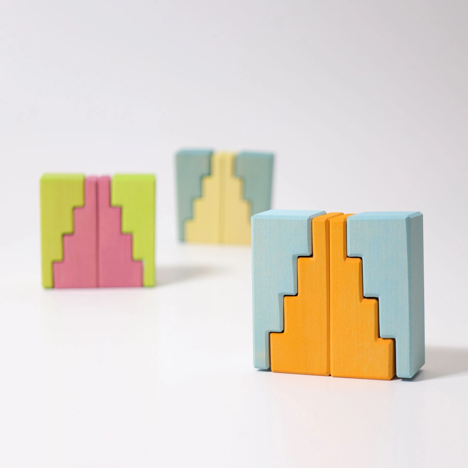 Grimm’s Stepped roofs are a beautiful creative element to bring to your building palette. The addition of 12 wooden stair building pieces, allows every building to be climbed, a transition from bottom to top and back again. They complement the Grimm’s large variety of construction and play materials.