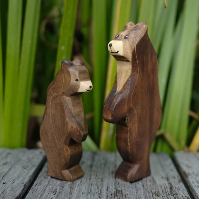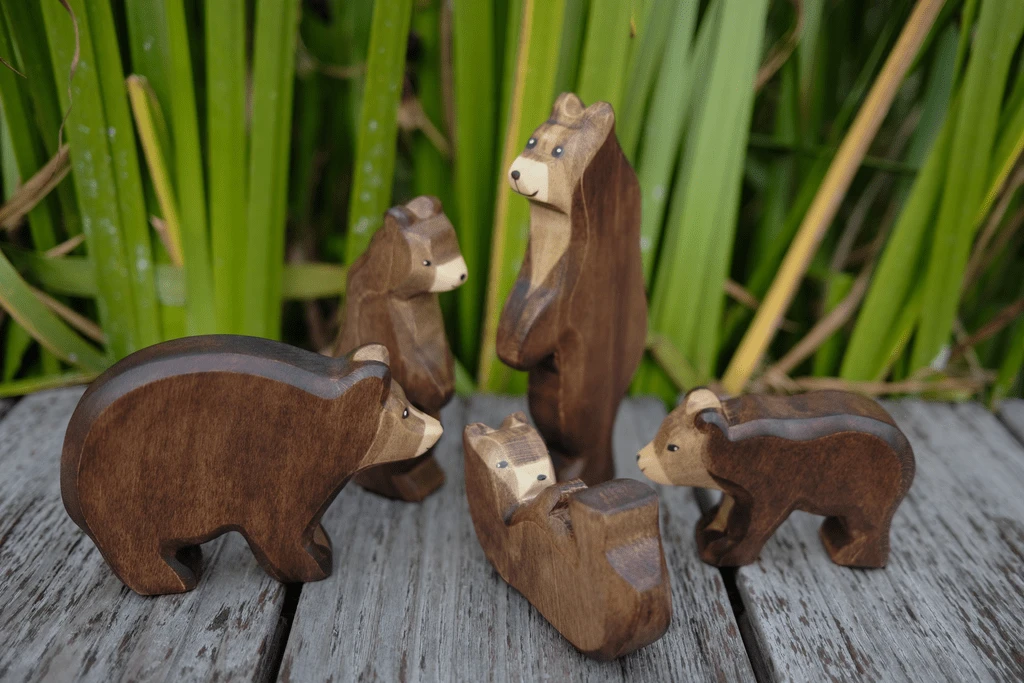 The beautiful figures are made in a small manufactory in Georgia, which has been producing high-quality and educationally valuable wooden toys since 1997. With much love and dedication, toys that capture the soul of animals and people have been produced there for over 35 years. Only local woods of the highest quality are used. The edges are rounded and finely sanded in several work steps so that they are pleasant and soft to the touch. Finally, they are painted with natural dyes (Biofa) and finally polished with high-quality oil. The workshop is characterised by inclusion in the small community, fair pay and a good and friendly working atmosphere. This is how sustainable toys are created that are loved and passed on from generation to generation. Each toy is simple enough to inspire imaginative play, but accurate enough to be realistic. In this way, children’s sense of beauty and imagination is encouraged.