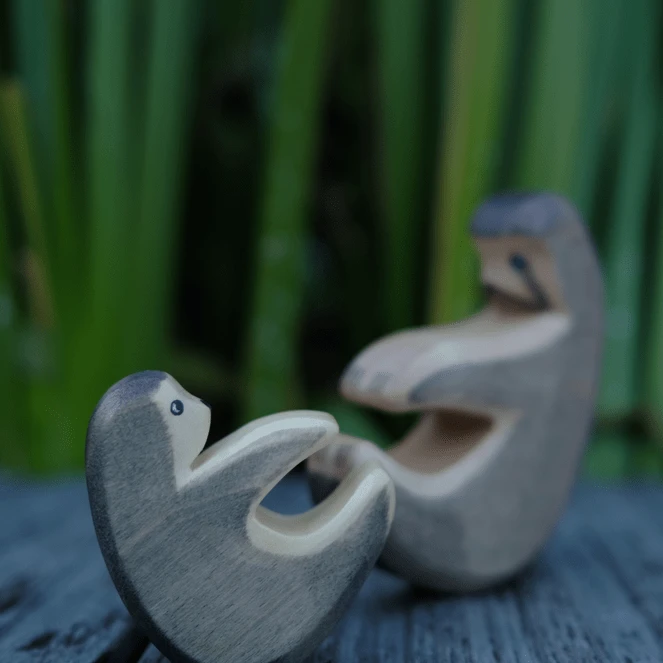 The beautiful figures are made in a small manufactory in Georgia, which has been producing high-quality and educationally valuable wooden toys since 1997. With much love and dedication, toys that capture the soul of animals and people have been produced there for over 35 years. Only local woods of the highest quality are used. The edges are rounded and finely sanded in several work steps so that they are pleasant and soft to the touch. Finally, they are painted with natural dyes (Biofa) and finally polished with high-quality oil. The workshop is characterised by inclusion in the small community, fair pay and a good and friendly working atmosphere. This is how sustainable toys are created that are loved and passed on from generation to generation. Each toy is simple enough to inspire imaginative play, but accurate enough to be realistic. In this way, children’s sense of beauty and imagination is encouraged.