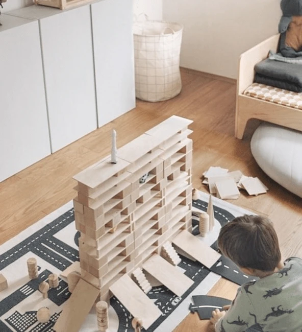 Each block size and shape has been thoroughly tested so as to support and enhance a child’s motor skills and cognitive brain development. Building ‘Just Block’ structures, helps develop a child’s fine motor and manual dexterity skills as well as hand-to-eye coordination and to exercise the hand and finger muscles. A given block set is not designed to force/instruct any particular way of playing. In contrast, the focus is on letting children use their own imagination. During the building process, a child can learn how to explore and exploit cause & effect, to undertake challenging tasks and to test the limits of their abilities.