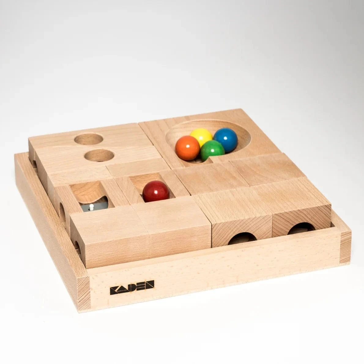 KADEN allows you to create beautiful, exciting marble run courses by putting the parts together like building blocks.