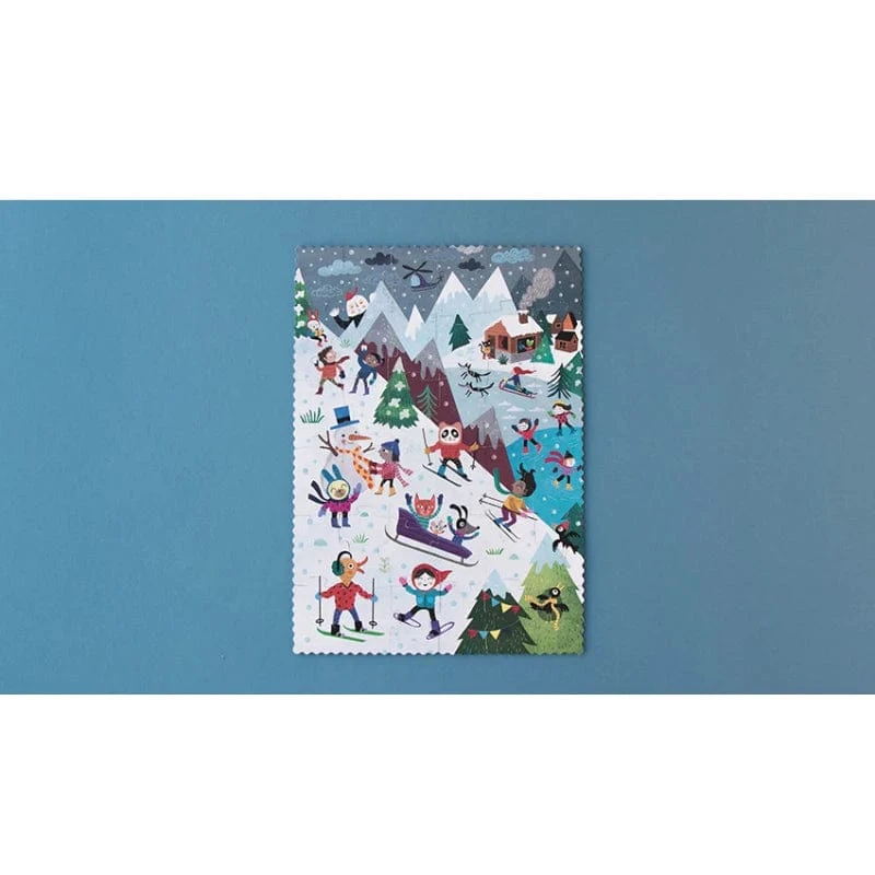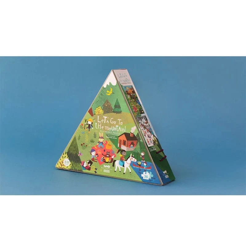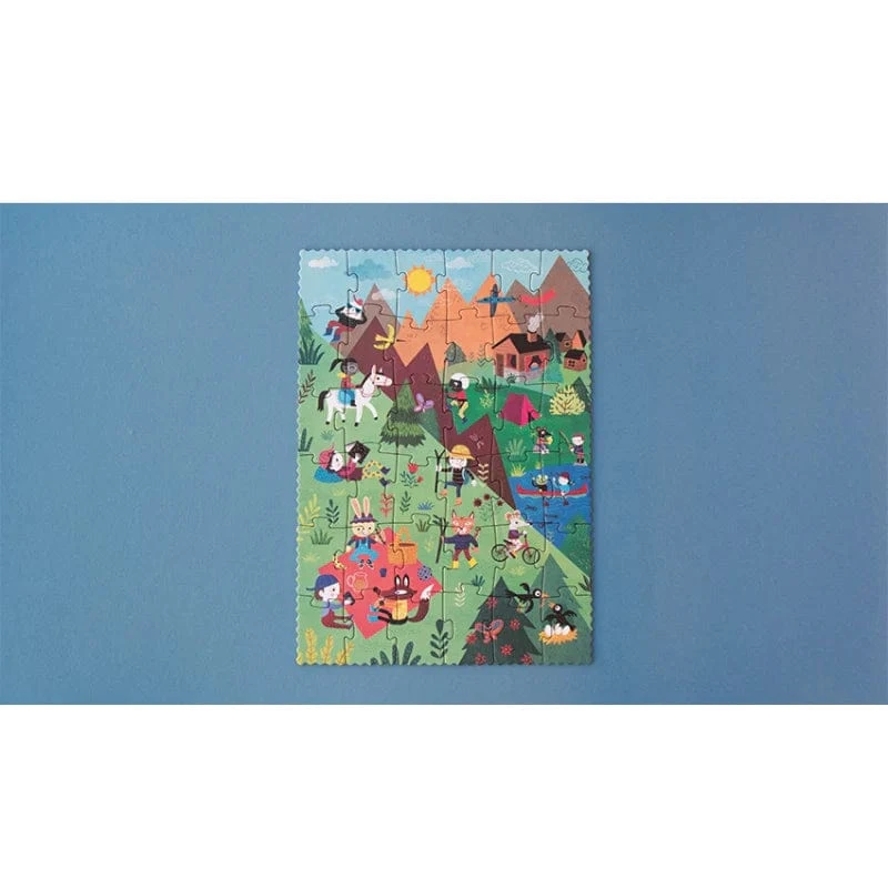 A colorful reversible puzzle with many details that also allows stations to work with the little ones.