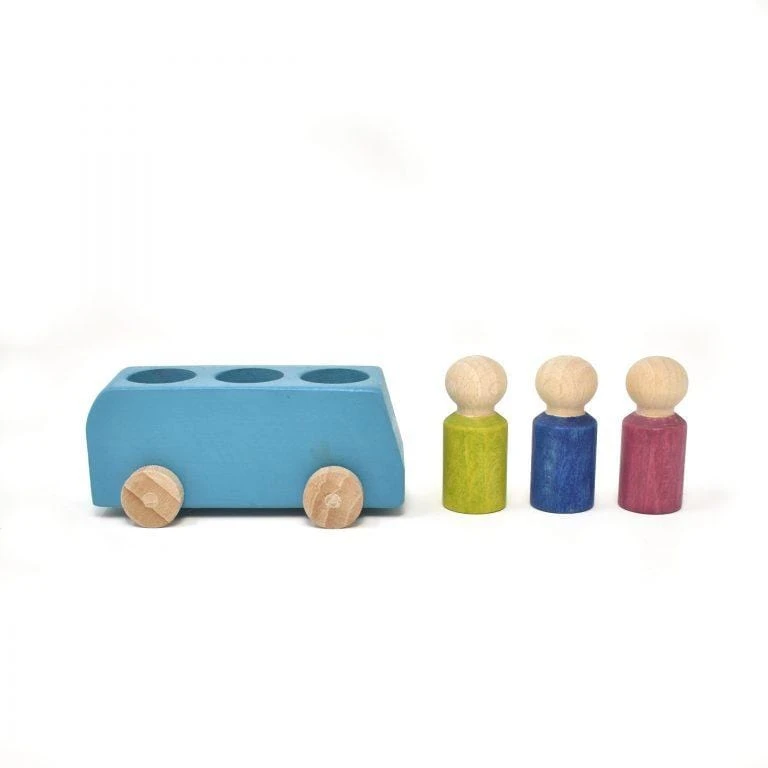 Ready to get on the bus and go for a ride around town? The Lubu buses offer space for one driver and two passengers and come with three wooden figures. The red bus comes with a blue, lime green and plum coloured figure.