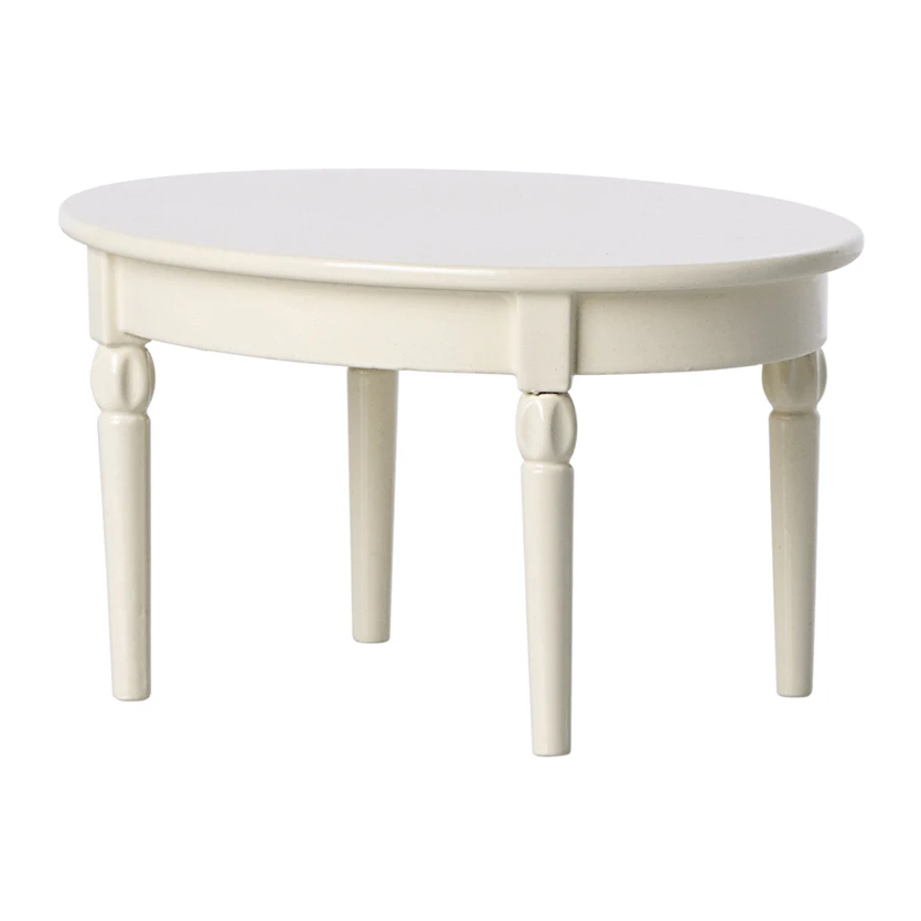 This dining table is made for your Maileg mice friends to gather for a meal together. Made of metal with detailed table legs. This fits perfectly into the Castle or Doll House. Measures 7cm (H) x 12cm (W).