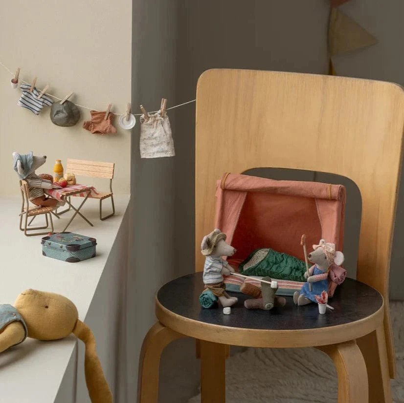 This mouse is well-prepared for a hiking trip in nature. Dressed for days of walking and equipped with her sleeping bag for nights under the stars. With magnets in her hands, add more accessories from the hiker collection to expand the play. Mice measures 13cm in length.Β