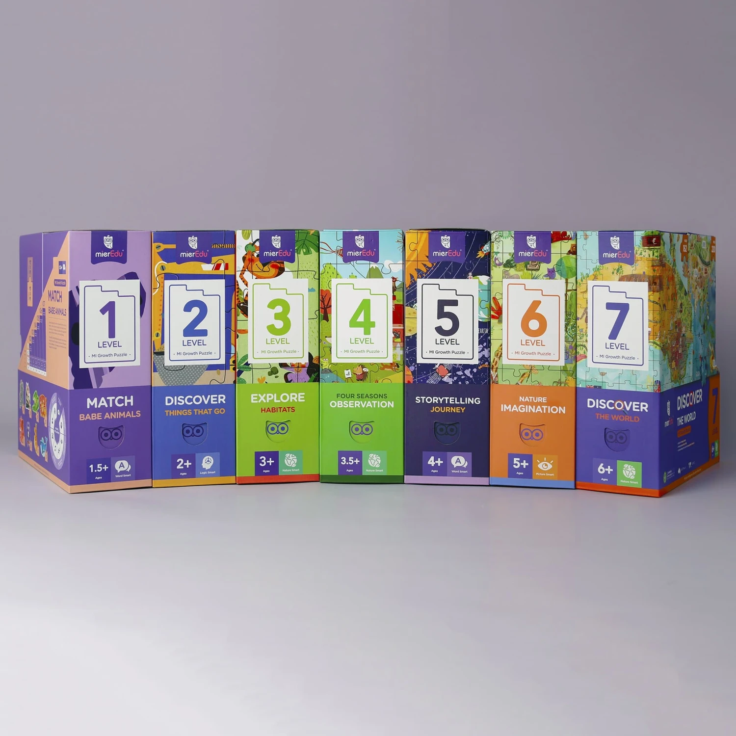 The mierEdu Multiple Intelligences Growth Puzzle series are designed cleverly for children to grow smarter throughout their age milestones. The package is eco-friendly and smartly designed for the bookshelf.