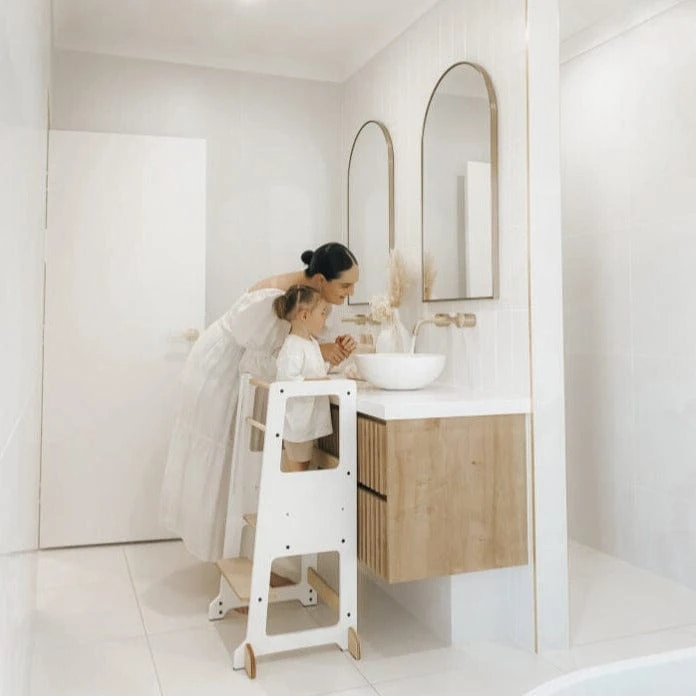 Our Learning Tower is perfectly designed for every family. It encourages your kids to play, learn and assist you in the kitchen and keep them busy and safe by your side.