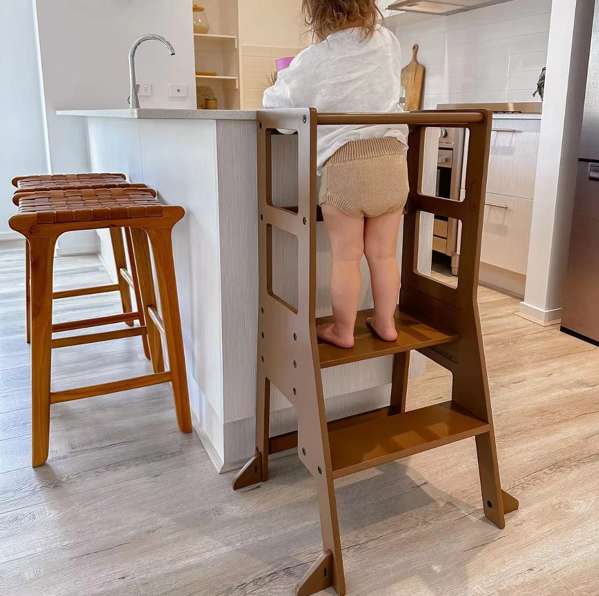Our Learning Tower is perfectly designed for every family. It encourages your kids to play, learn and assist you in kitchen or under any busy situations by keep them safely by your side.