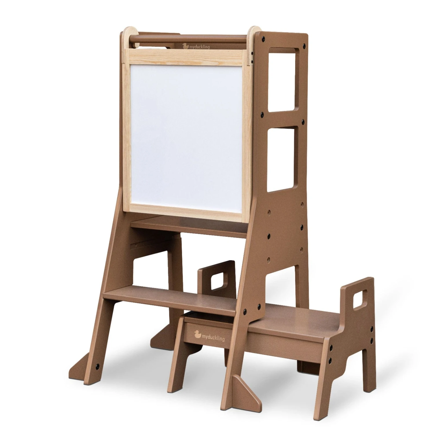 My Duckling® Adjustable Learning Tower with Stool is uniquely designed with three built-in platform heights and can grow with your kid. Not only that, there is an extra stand stool that could be used in the washroom or any place in your home so that kids can brush their teeth or even play by themselves.