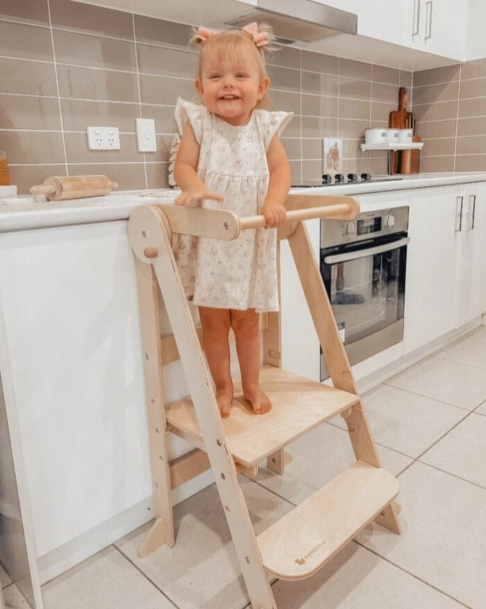 Our Learning Tower is perfectly designed for every family. It encourages your kids to play, learn and assist you in kitchen or under any busy situations by keep them safely by your side.