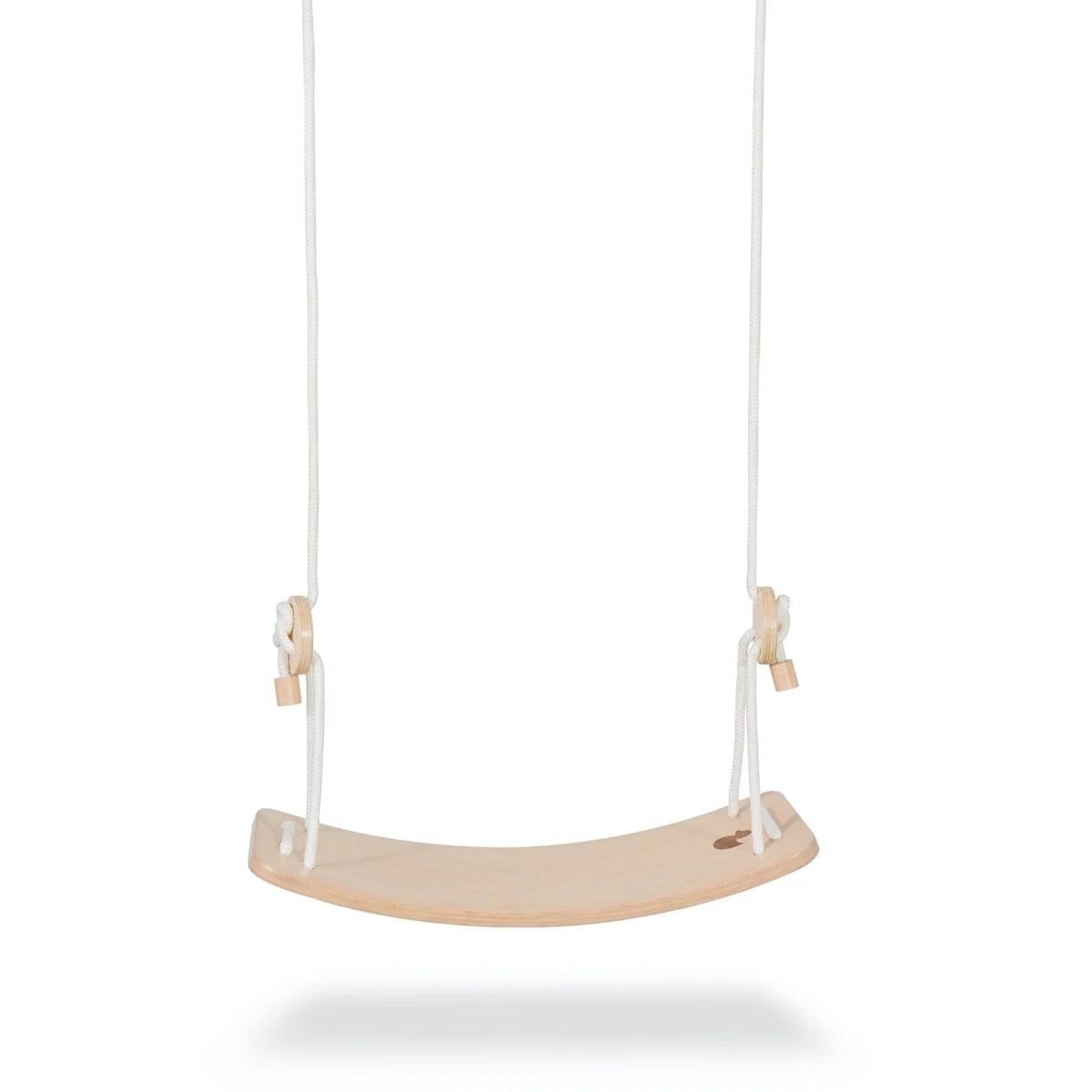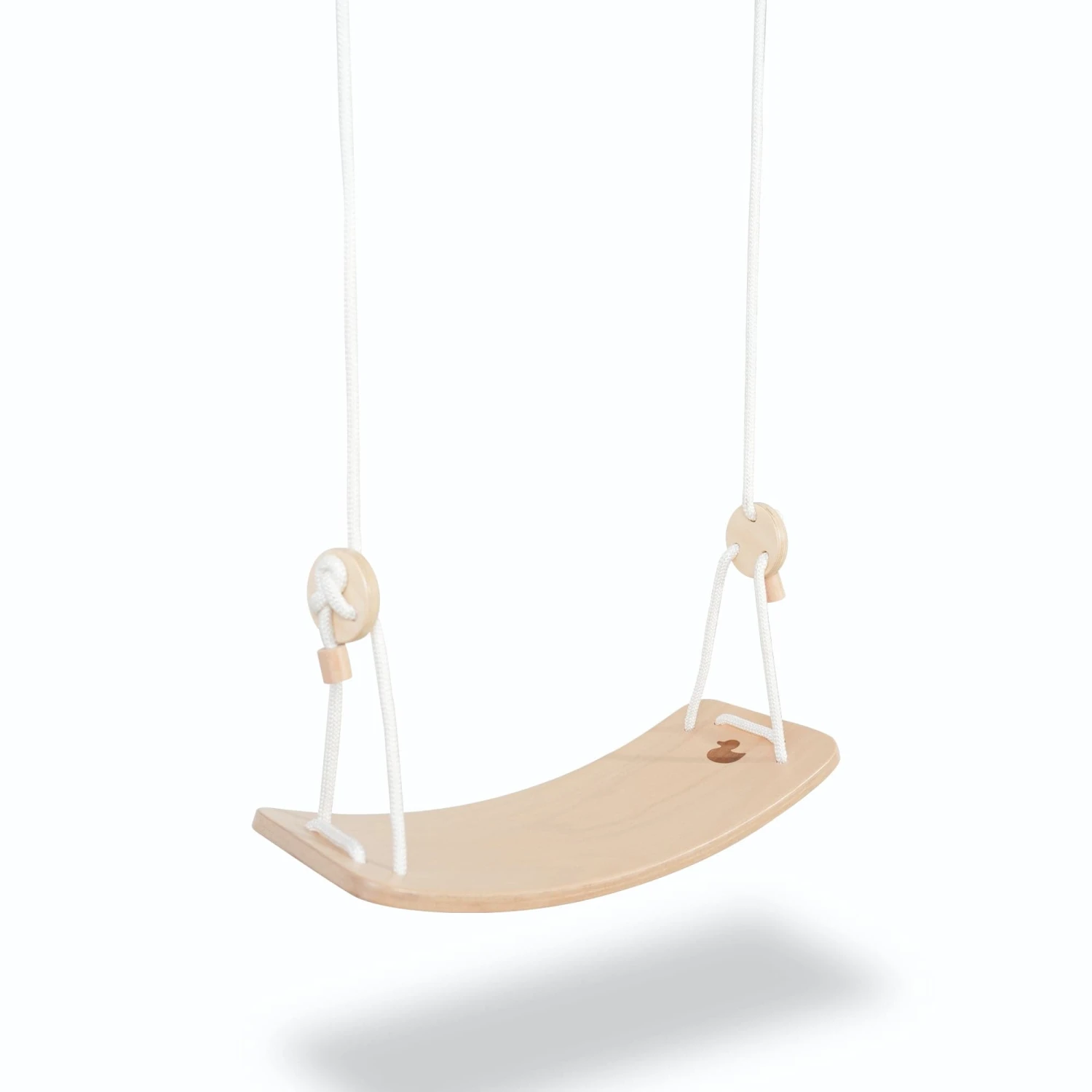 It is crafted from premium birchwood, beechwood and rope, and is finished with a non-toxic water-based lacquer. Designed for both indoor and outdoor fun, always store the swing indoors when not in use. Never leave your child unattended while playing!