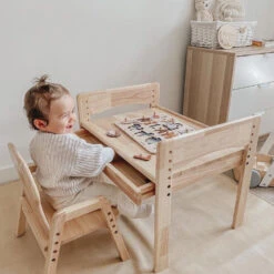 My Ducklingย Primary Adjustable Table and Chair Set is uniquely designed with built-in platform heights, it witnesses your kids growth.ย