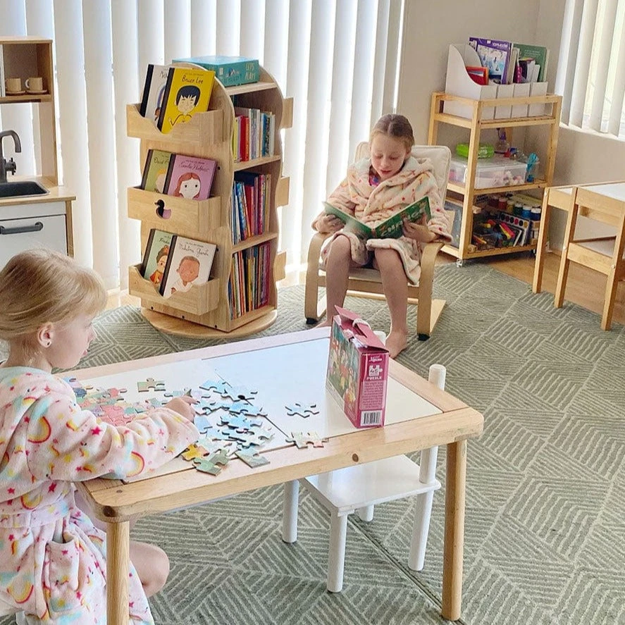 My Duckling Revolving Solid Wood Bookcase provides more storage space and display for books with the concept of space-saving. This rotating bookcase can store up to 300 books, which is suitable for the department and small room.