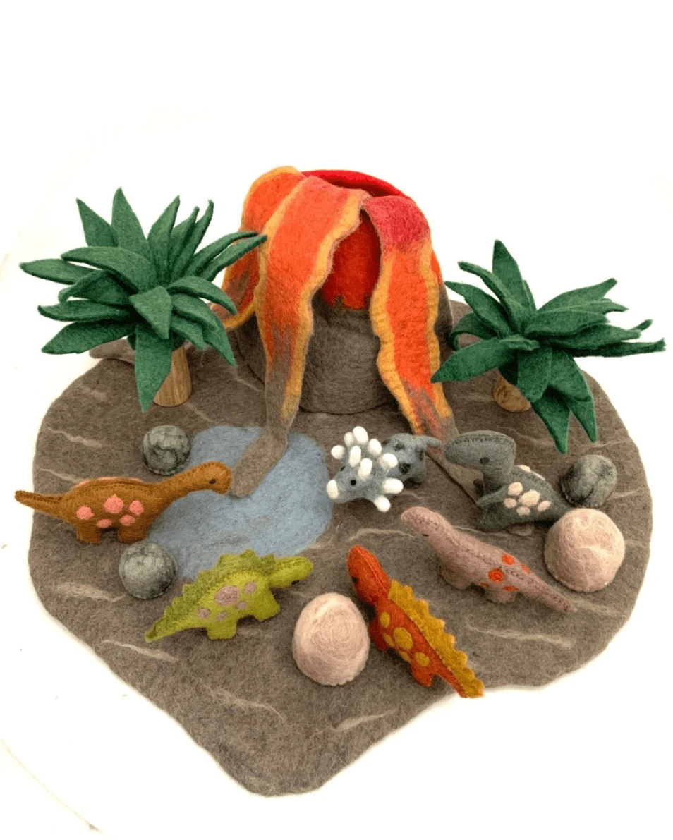 A beautiful collection of 5 small dinosaurs made from 100% natural wool and non-toxic biodegradable dyes. A beautiful addition to your child’s Jurassic small world play. The Papoose Small Natural Dinosaur Set will spark your little oneβs creative and imaginative play as they are transported back to the Cretaceous period with their friends.Β