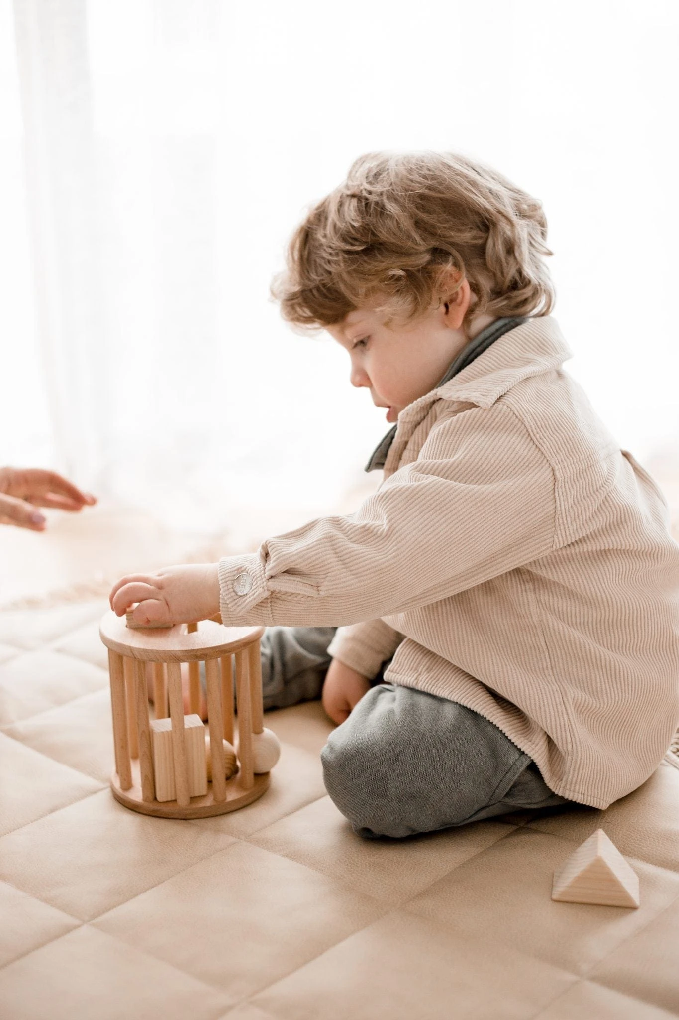 - Interactive Play: The Shape Sorter offers more than just sorting fun. The wooden shapes inside create a unique, pleasant sound as the sorter moves, stimulating auditory senses. Moreover, this dual functionality promotes active play and helps to develop gross motor skills as children push and chase the sorter.