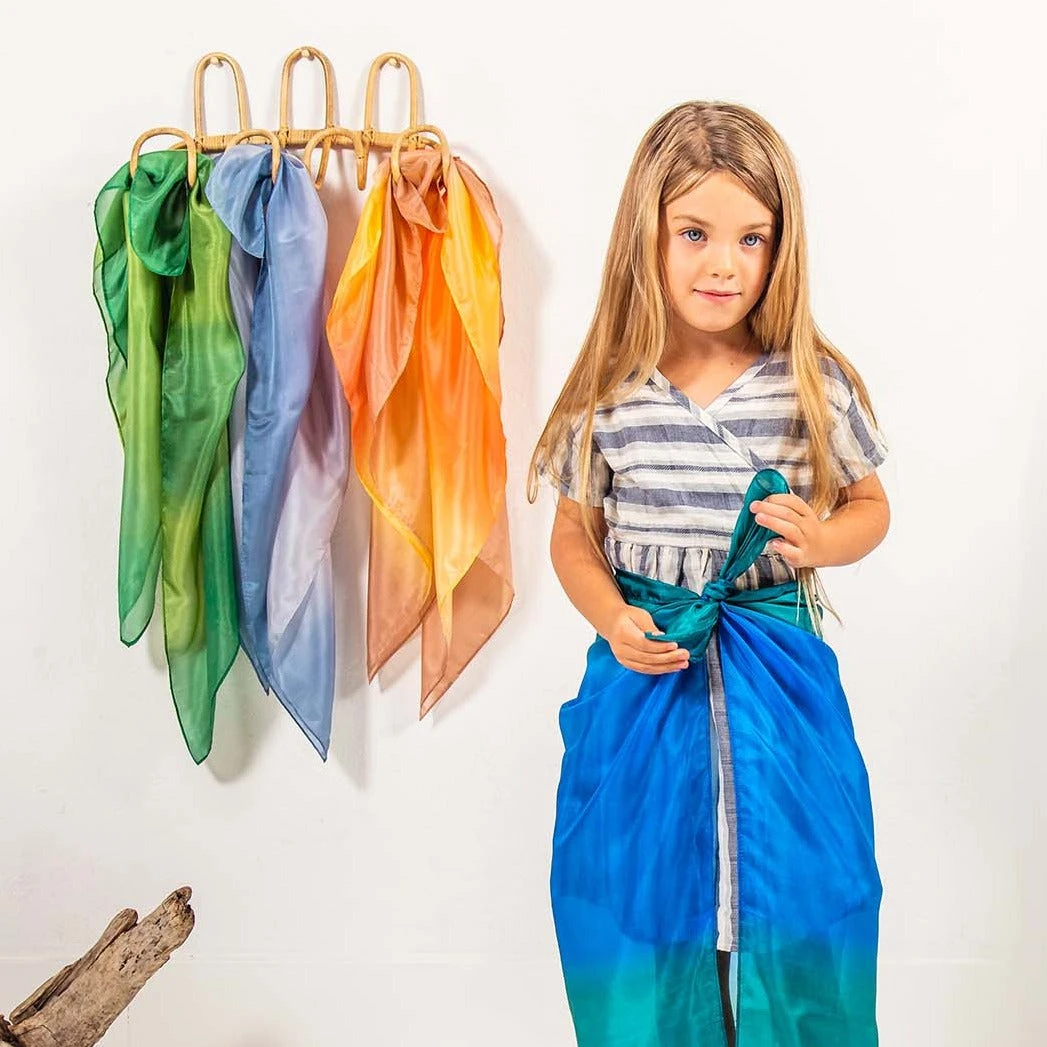 Playsilks are inspiring, magical toys that children will be drawn to play with time and time again. The simplicity and open-ended nature of Playsilks tap directly into the child’s creative potential.