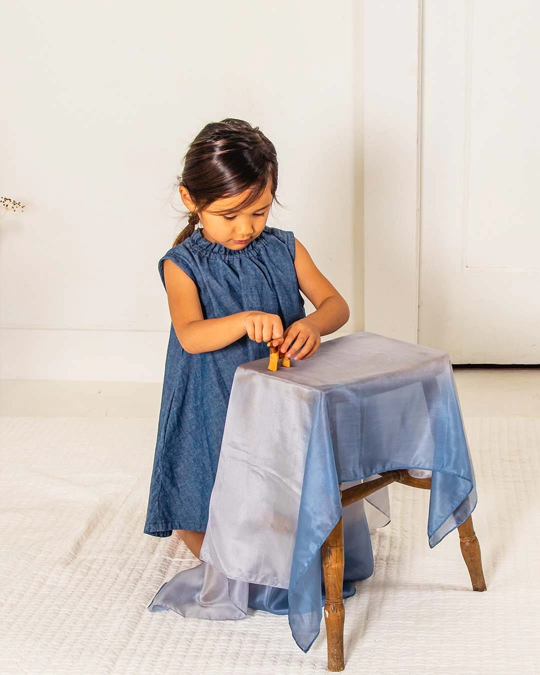 - Open-ended play with Playsilks allows children to express their imagination and support their independence.