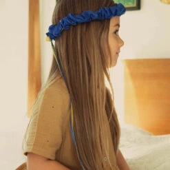 The Star Garland features a stretchy elastic band (18 – 28-inch diameter), wrapped in 100% silk, hand-painted, and silkscreened in our Star pattern. Fits comfortably on even the most sensitive little ones.