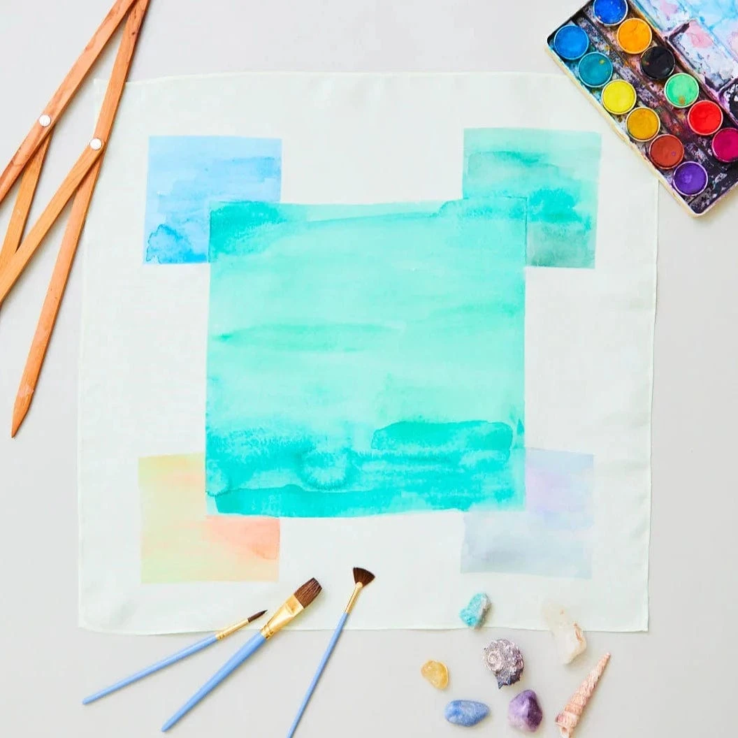 Mini Earth Playsilks are 53 x 53cm squares made from heavyweight (8 momme) 100% pure silk. They are perfect for small world play, color play, color matching, and as capes, flags, headbands, and so much more!