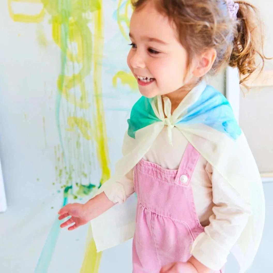 - Open-ended play with Mini Playsilks allows children to express their imagination and supports their independence.