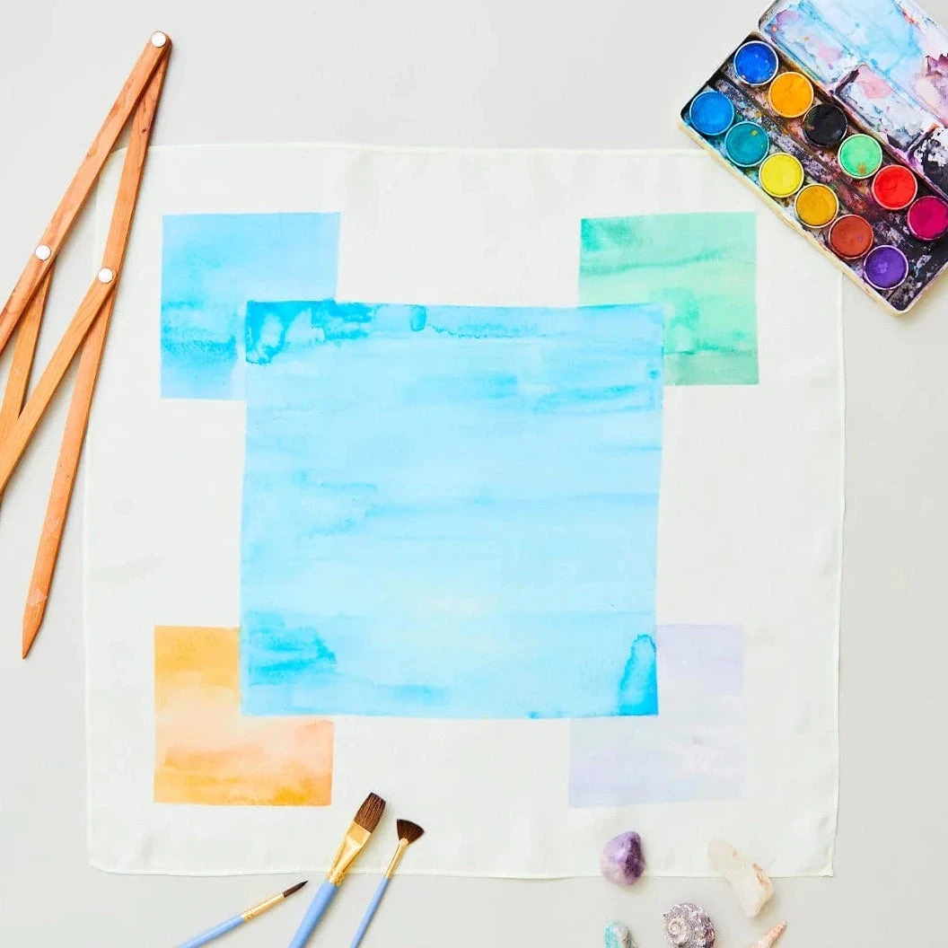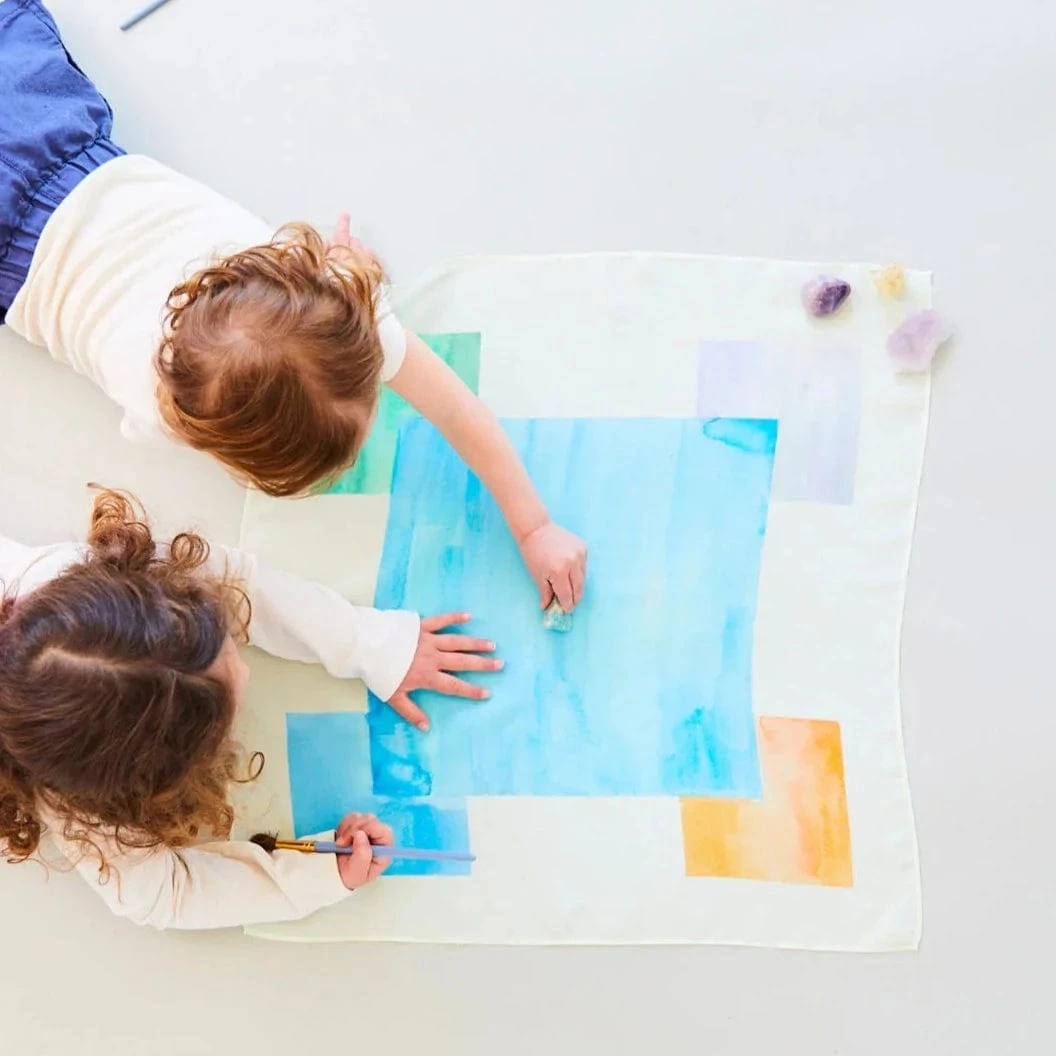 Mini Water Playsilks are 53 x 53cm squares made from heavyweight (8 momme) 100% pure silk. They are perfect for small world play, color play, color matching, and as capes, flags, headbands, and so much more!