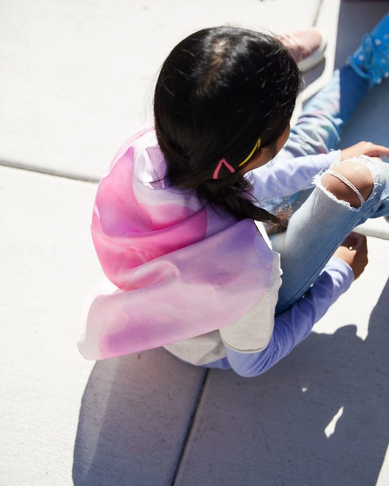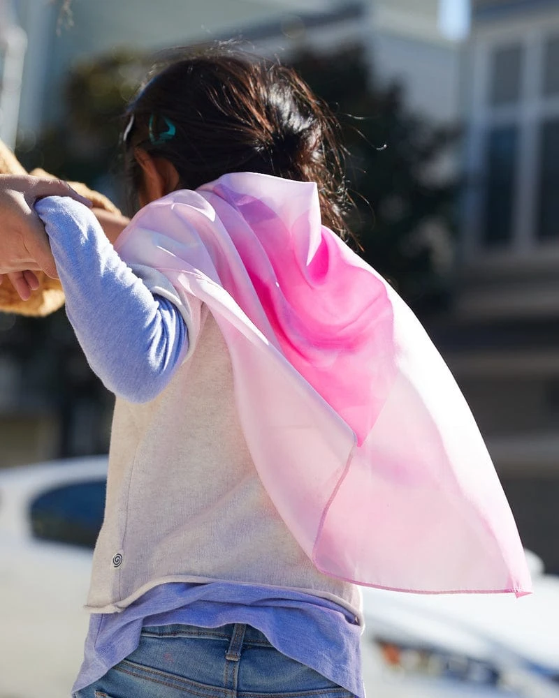 Our Mini Playsilks are sized for the younger child at 21 x 21 inches, making them easier to handle for little hands, and perfect for small dress-ups, as props for play scenes, and so much more.