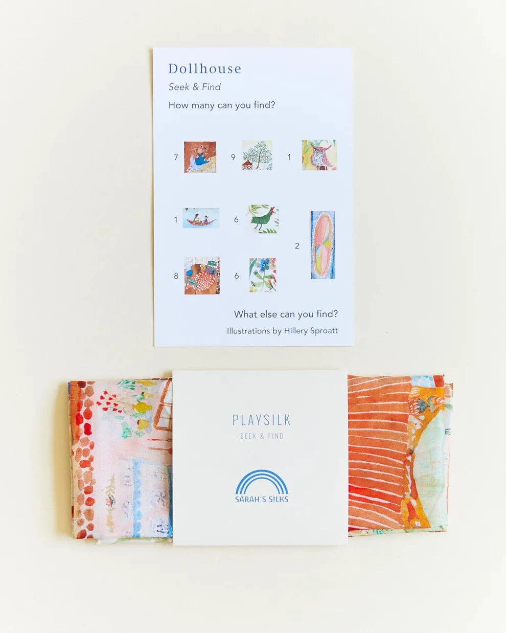 NEW Dollhouse Seekย & Find Playsilk –ย Discoverย animals, plants, and people in this Dollhouse Playsilk! Your child willย loveย exploring the magicย this limited editionย Playsilk have to offer.