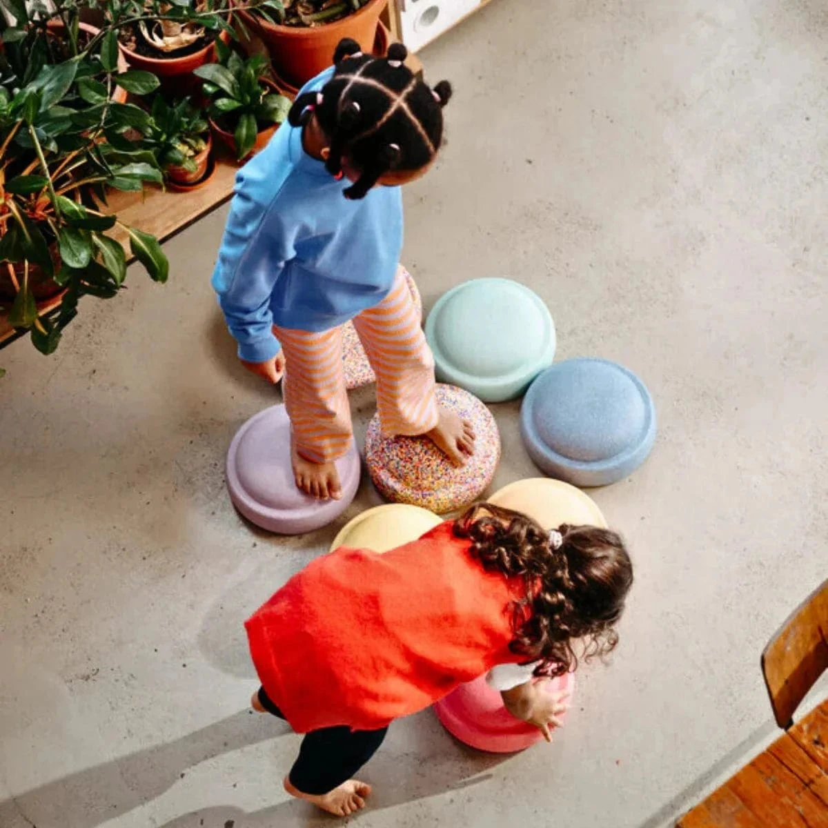 Their minimalistic design, vibrant colours, and stackability ensure that Stapelsteinยฎ Balancing and Stepping Stones fit seamlessly into any space.