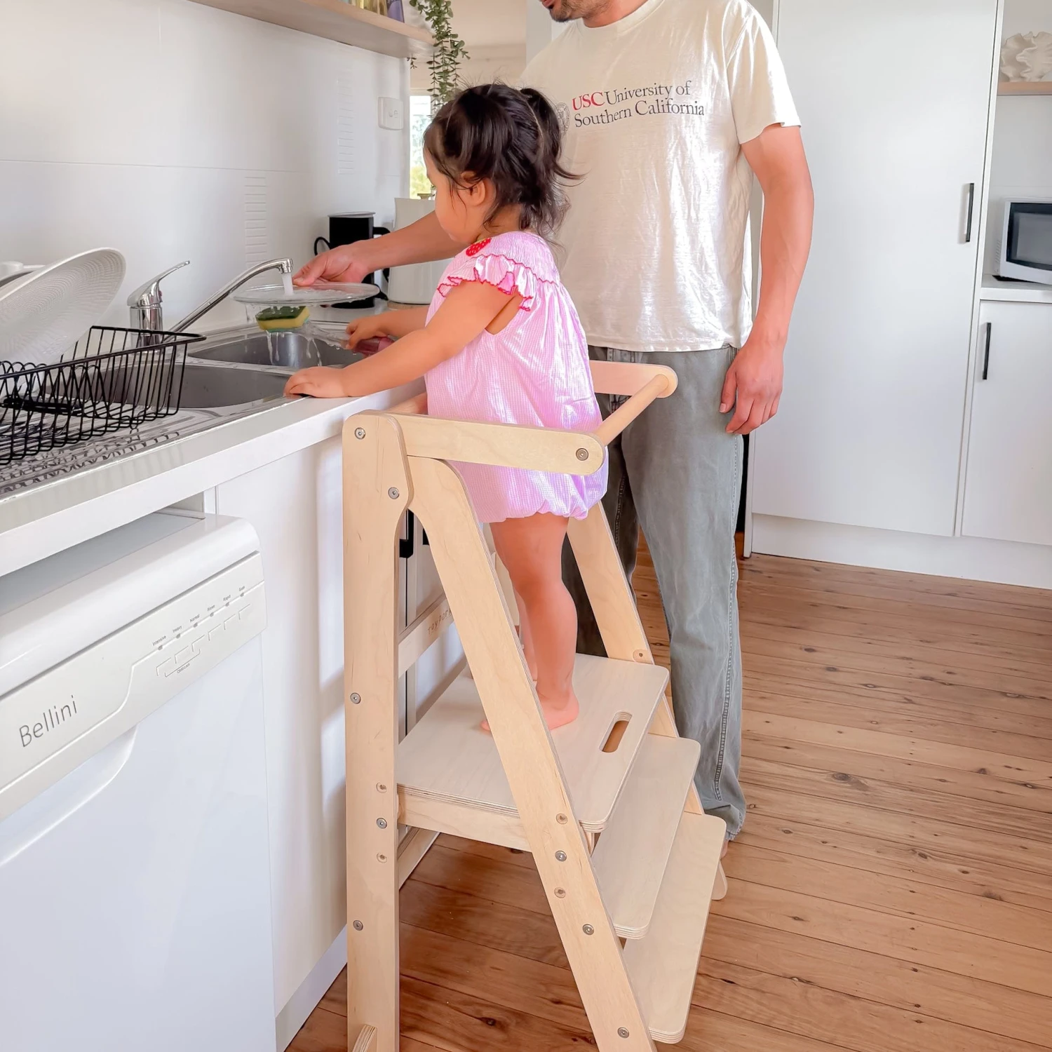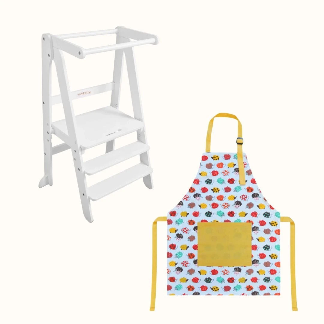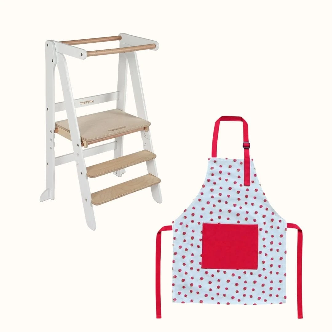 Have fun exploring the kitchen and the playroom with this exciting learn-and-play bundle! Give your toddler a boost with the Toypark Folding Learning Tower, perfect for safe hands-on fun at counter height. Dress them up for culinary fun with our Apron & Hat Set, perfect for budding chefs.