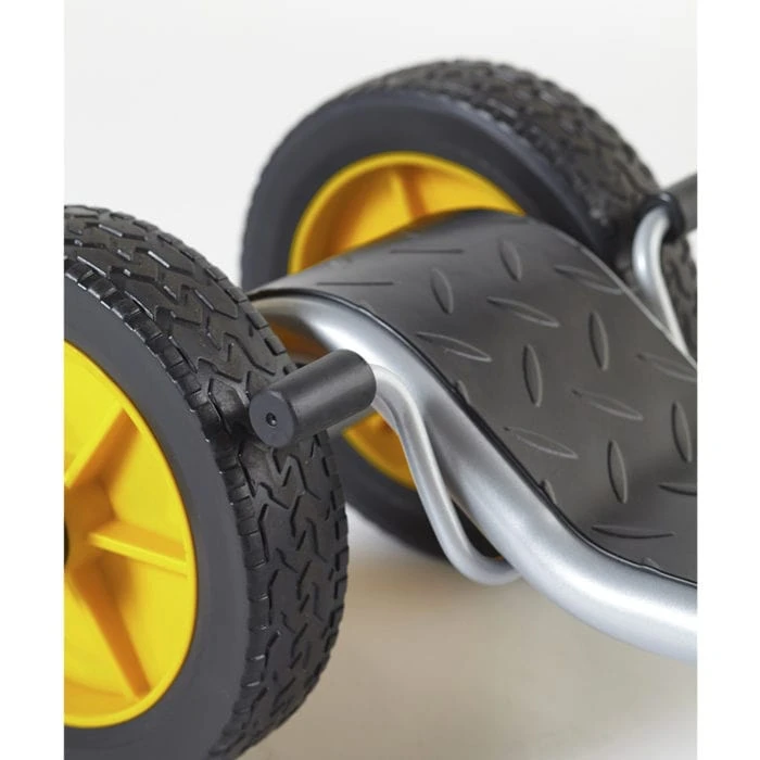 - Solid Polyurethane tires, on spokeless wheels, with steel ball bearings for a smooth, safe ride.