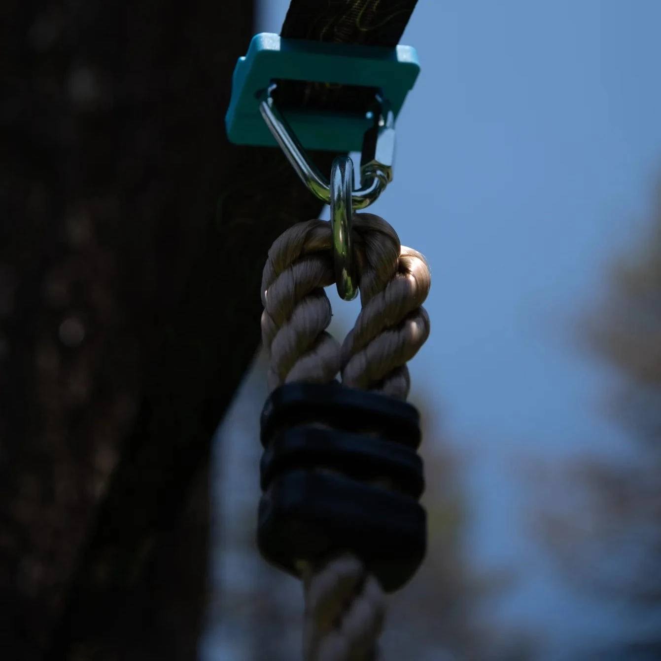 Super popular Swing base allows kids a solid base to give them stability as they climb up the rope. Fun also to sit on and use as a swing too. Easy setup that attaches to Ninja or Swing Set line. Includes a carabiner Treline Clip. Climbing holds build confidence and are perfect to use to transition to other ninja obstacles.