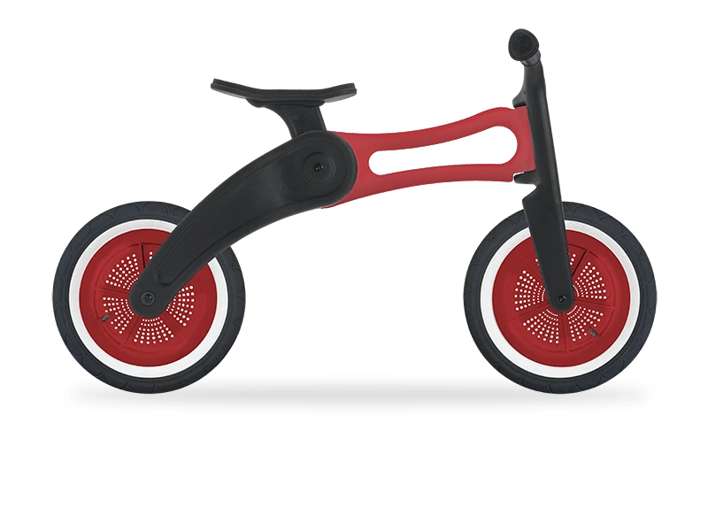 Wishbone Bike RE2 turns waste plastic into an award-winning bike for toddlers. This is beautiful, multi-functional design for ages 18 months to 6 years. Toddlers learn to balance and ride on a bike that fits perfectly as they grow. With easy assembly and rotafixTM frame & seat adjustability for years of joy. Trike Kit sold separately for 12 months ands up. 5 year warranty. Made from recycled bottles & carpet. Lasts longer, lighter weight and lower carbon emissions than a steel bike. RE2 “Raw” colour components contain zero additives for outstanding recyclability. Check out our customizer here.